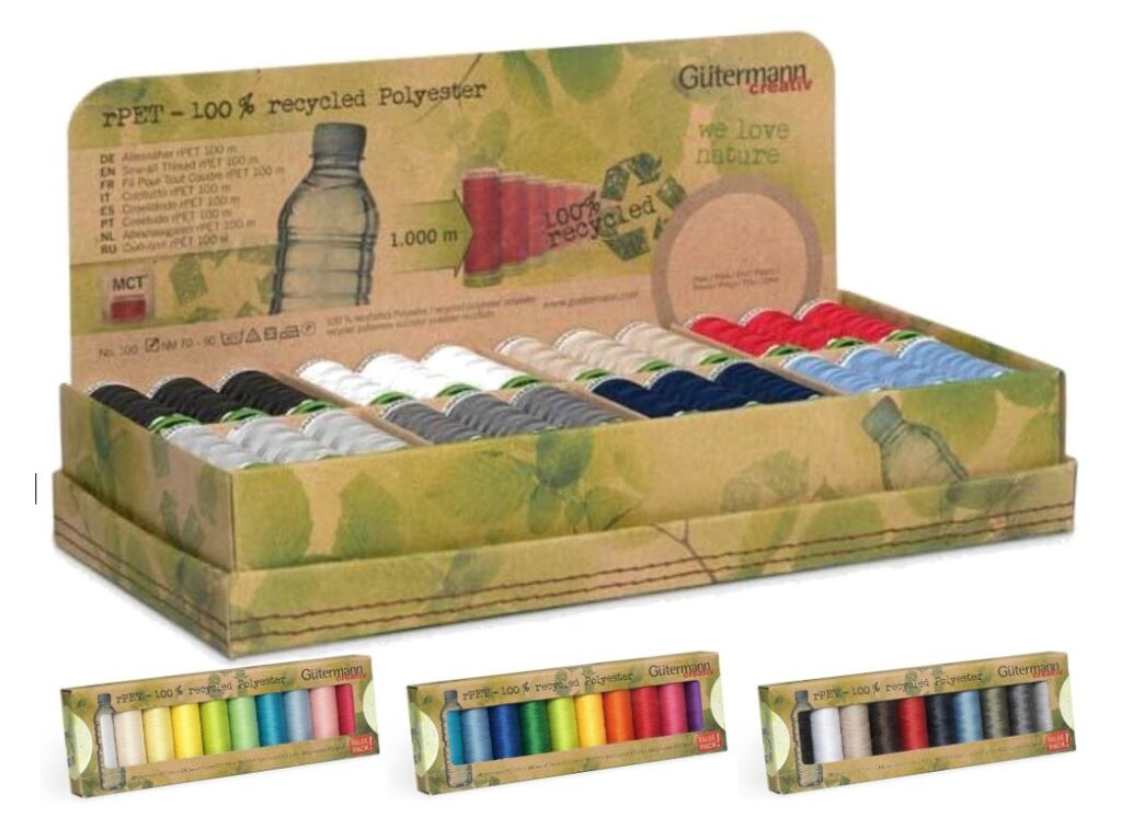 Gütermann rPET naaigaren is gemaakt van 100% gerecycled polyester afkomstig uit petflessen. Heel duurzaam en van prachtige kwaliteit.